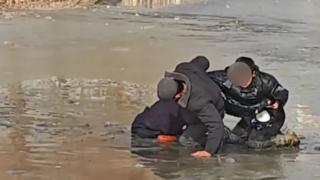男孩坠入冰河 警民合力营救转危为安