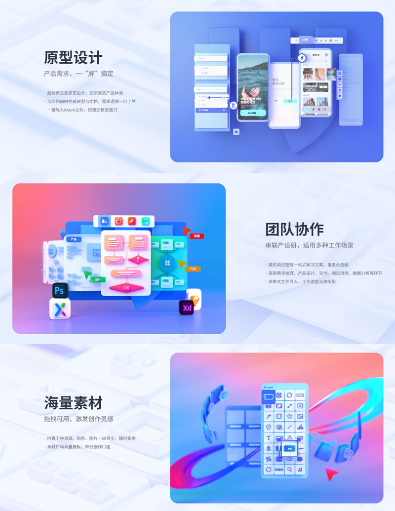 AI生成原型页面:无惧灵感枯竭,告别手动绘制,只需一个指令,墨刀AI便可以为你“智造”多种原型设计方案。